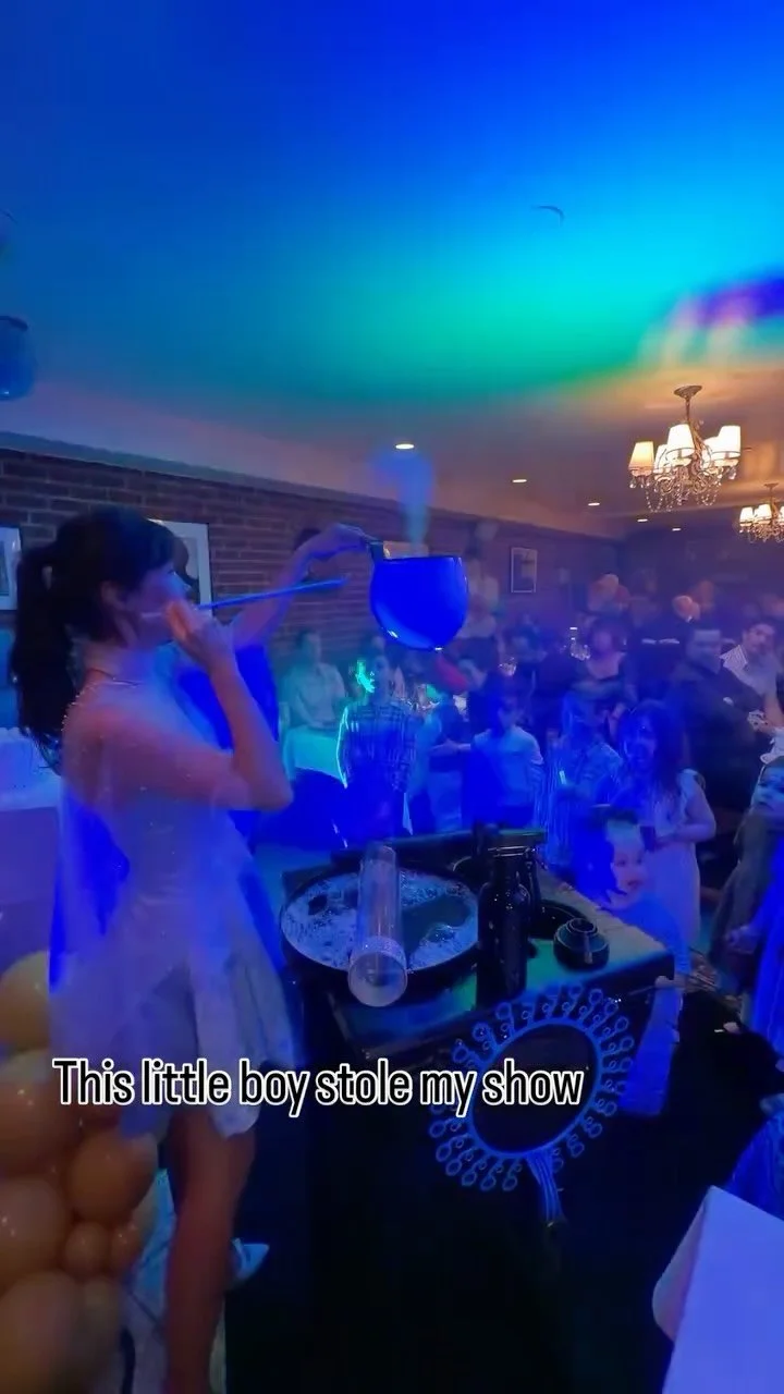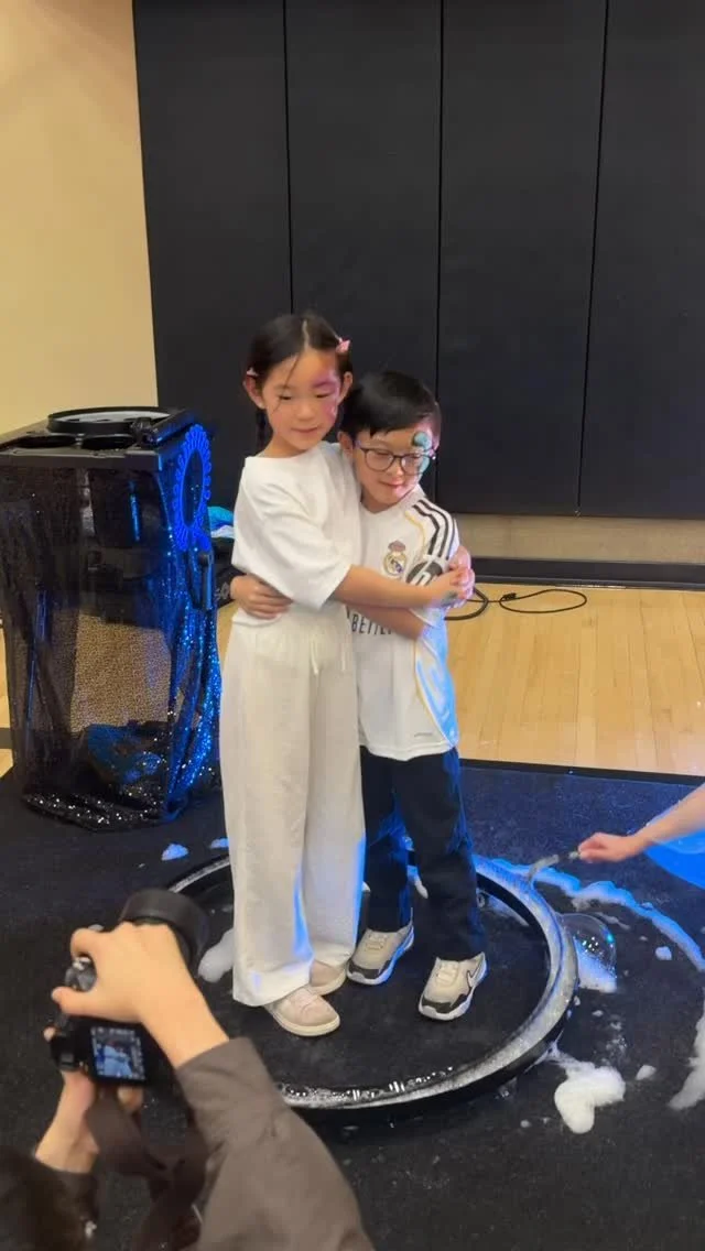 A joyful, high-energy performance filled with bubble tricks and a giant bubble photo op for your guest of honor